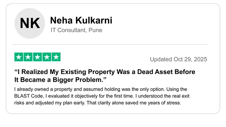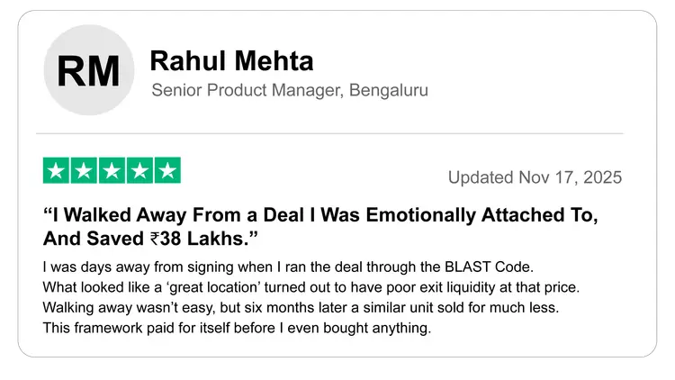 Yes. The logic doesn’t change with pin code. Whether you’re in Mumbai, Pune, Bangalore, Hyderabad, Delhi-NCR or a Tier-2 city - the way to check if you’re overpaying and what your exit options are stays the same. I’ve used this thinking across 45+ Indian real estate asset types - flats, resale, commercial, co-living, land banking and more - the checklist stays the same, only the numbers change.